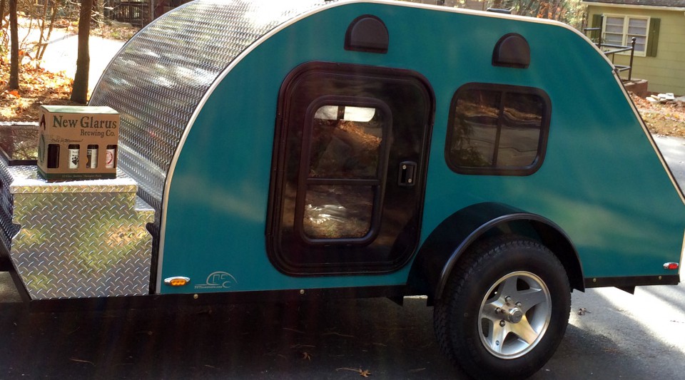 Louise is a 2014 TCTeardrops 5×9. I got a few key uprades when I had her built. A full width waterproof toolbox, solar panel for recharging the battery, some fans for interior cooling and landing pads for a future Yakima roof system.