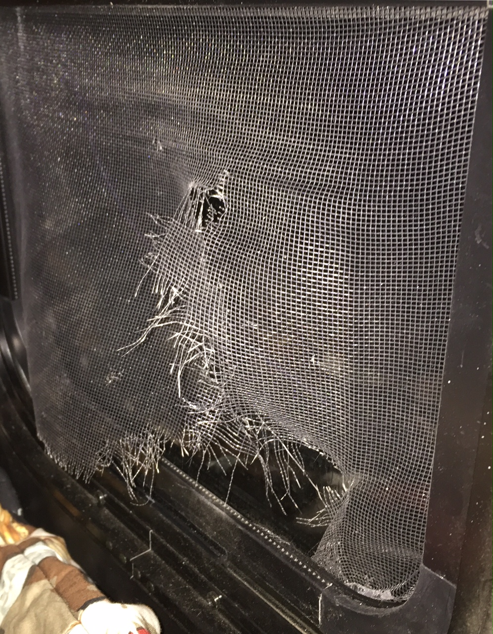 My camper suffered her first disaster at the hands (or teeth?) of my dog. Will didn’t appreciate being left behind when I went to the bathroom in the middle of the night, and decided to break through the screen window in my door. Needless to say, I’m going to learn a new skill in the form of window screen repair thanks to Will Shakespeare. He is a terrible camper.