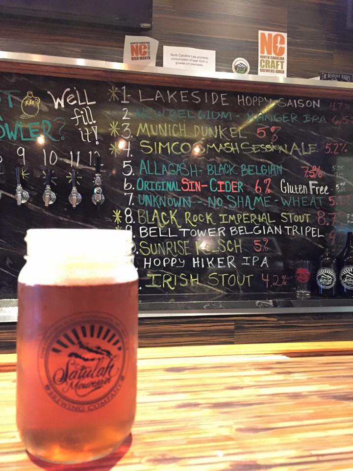 One of the highlights of my weekend camping trip was visiting a new (to me) brewery. Satulah Mountain Brewing Company, of Highlands, NC has been around for just under a year and is the first brewery in Macon County. Despite prohibition ending in the 1930’s, according to my research, it didn’t end in Macon County until the 1990’s, and liquor-by-the-drink and the serving of delicious malt beverages AKA beer didn’t become legal until 2006. Yikes. What century were they living in?