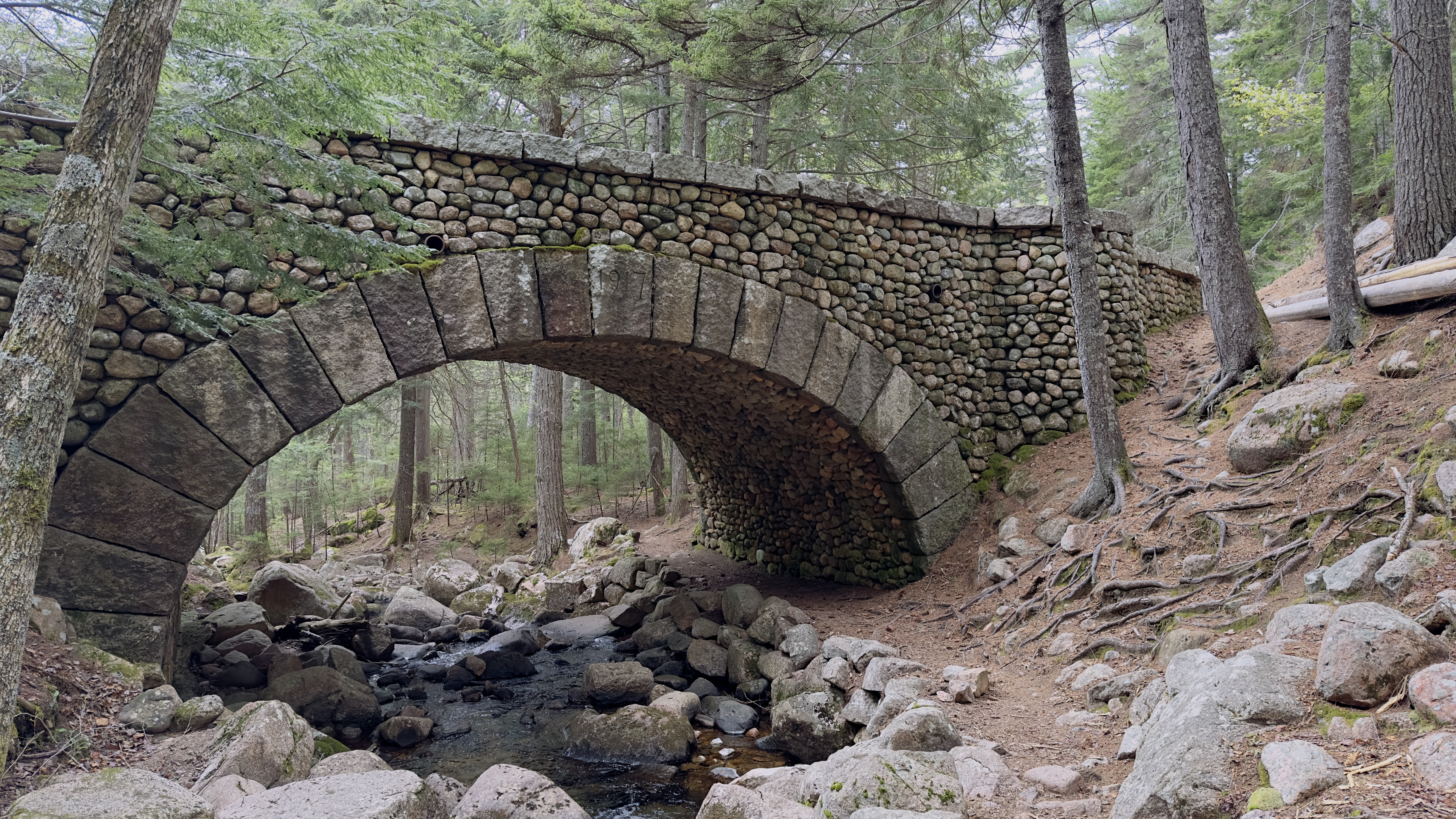 We spent one afternoon hiking near the Jordan Pond House. We explored the Jordan Stream Trail and hiked on a carriage road for a bit, ending up at the cobblestone bridge, one of the historic bridges that traverse the 51-miles of carriage roads. Apparently this bridge is the only one built out of cobbles – stream rounded stones. It was a gorgeous hike and a lot of fun to see the interior of the park!